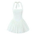 Mit seinem Ballonrock und dem strukturierten Oberteil bringt dieses kurze weiße Abendkleid eine originelle Note, bleibt dabei aber leicht zu kombinieren. Der figurbetonte Schnitt umschmeichelt den Oberkörper dank eines weichen, leicht formenden Materials, während der Rock ein kontrolliertes Volumen für eine selbstbewusste Ausstrahlung bildet.
