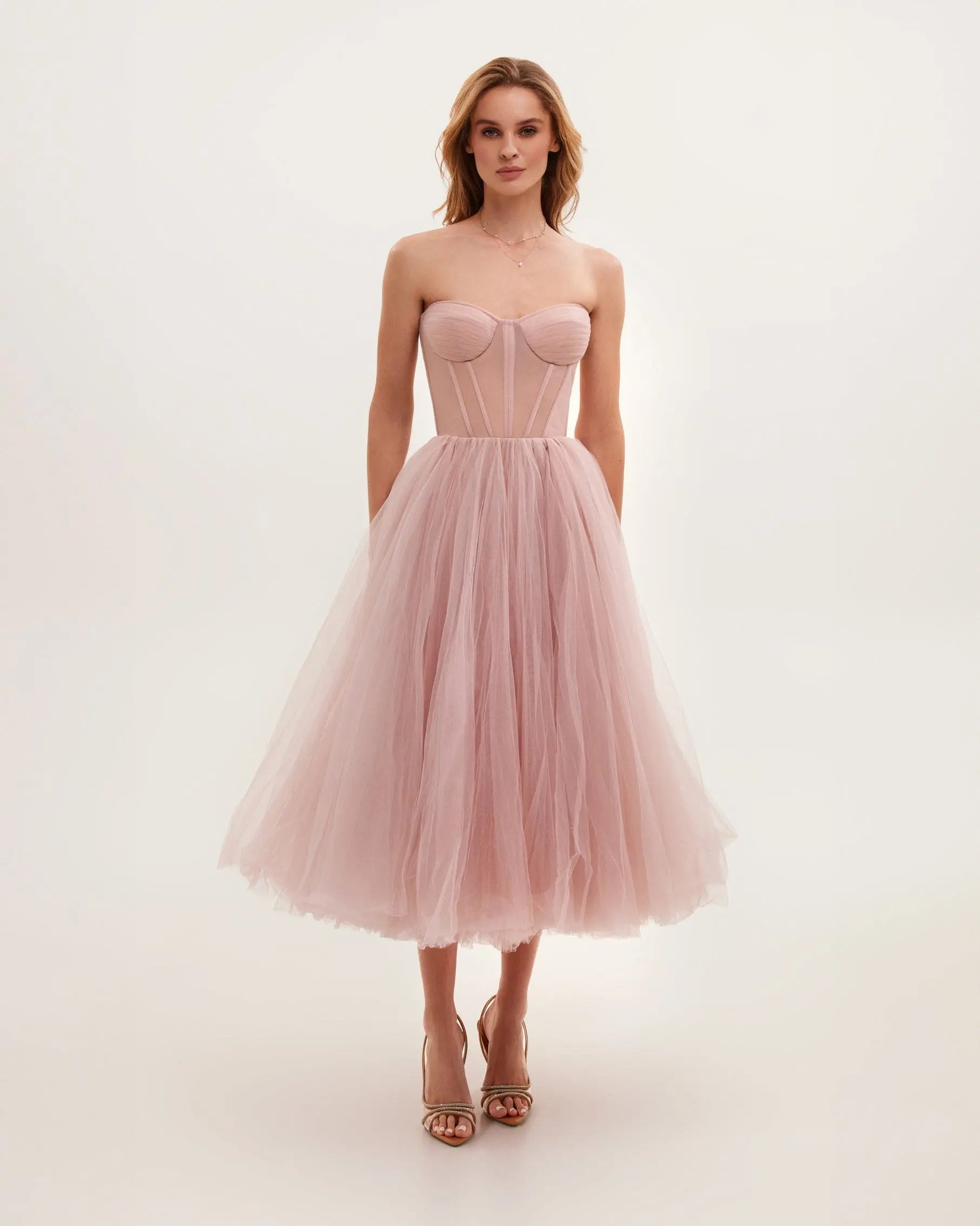 Powder Pink Tulle Evening Dress – Elegant Bustier