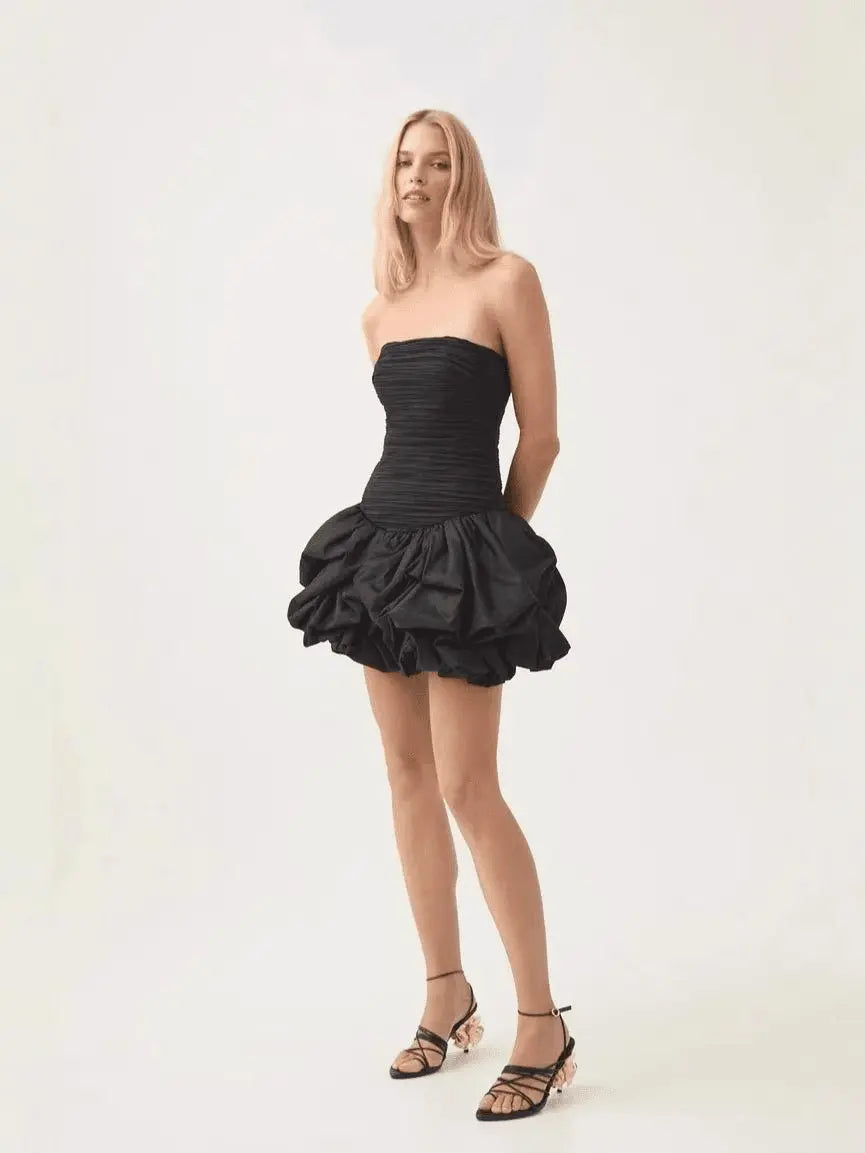 Vestito mini Lucia senza spalline con gonna drappeggiata