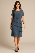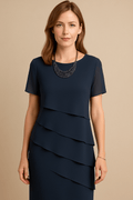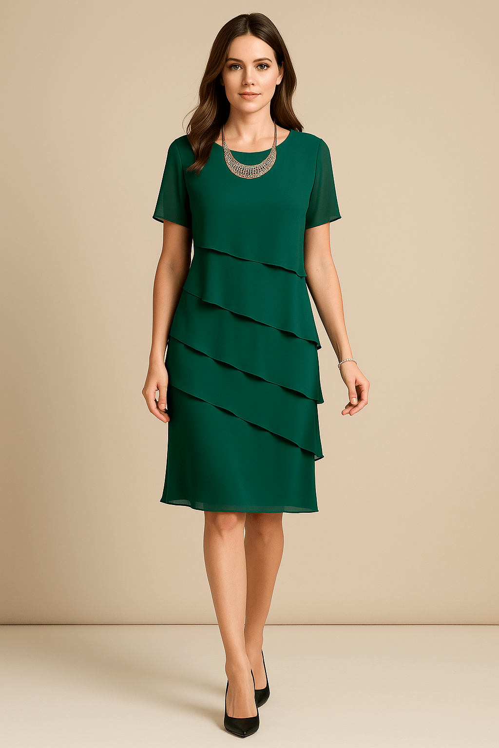 Vestito Donna Elegante in Poliestere – Taglio Dritto con Volant Sovrapposti