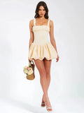 Questo mini abito con dettaglio arricciato e silhouette femminile conquista per il suo volume aereo e il busto aderente. Progettato per valorizzare la silhouette, unisce romanticismo, freschezza estiva e un tocco couture in un taglio moderno.