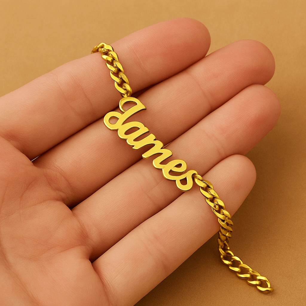 Gepersonaliseerde Naam Armband voor Heren – Goudkleurig of Zilverkleurig Roestvrij Staal