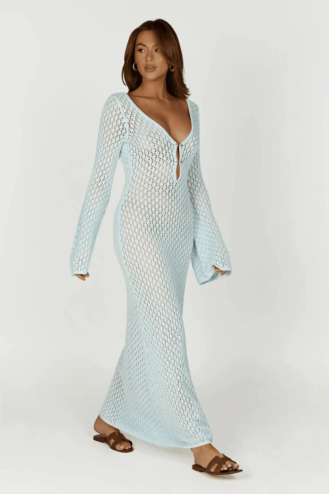 Długa sukienka Noa z dzianiny ażurowej z motywem muszli