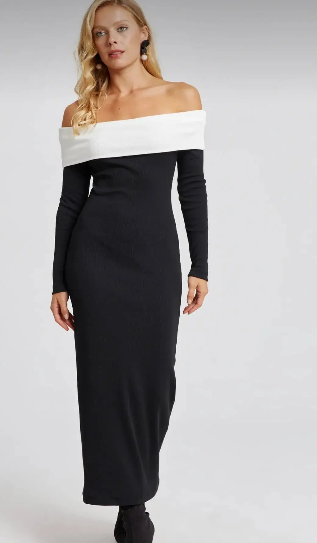 Długa czarna sukienka Emilie z dekoltem w łódkę
