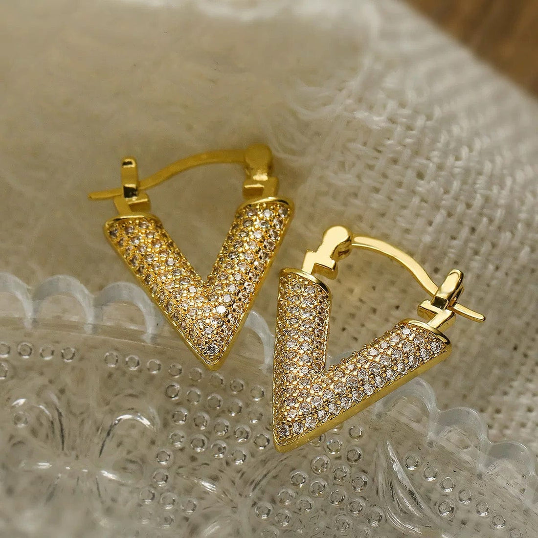 Złote kolczyki koła z sercem wysadzane cyrkoniami - romantyczny akcent blasku - MAX FOR ME