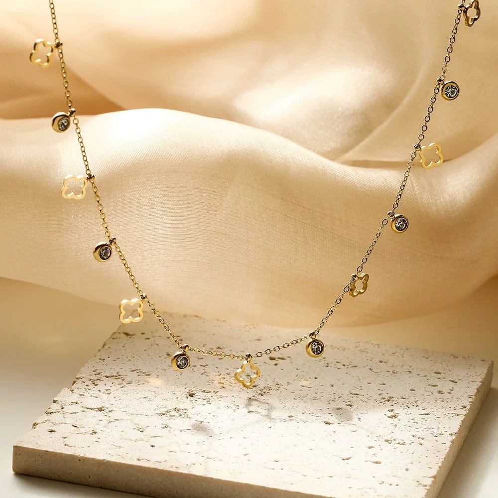 Złoty naszyjnik z zawieszkami z cyrkoniami – modna biżuteria z gwiazdkowymi wisiorkami