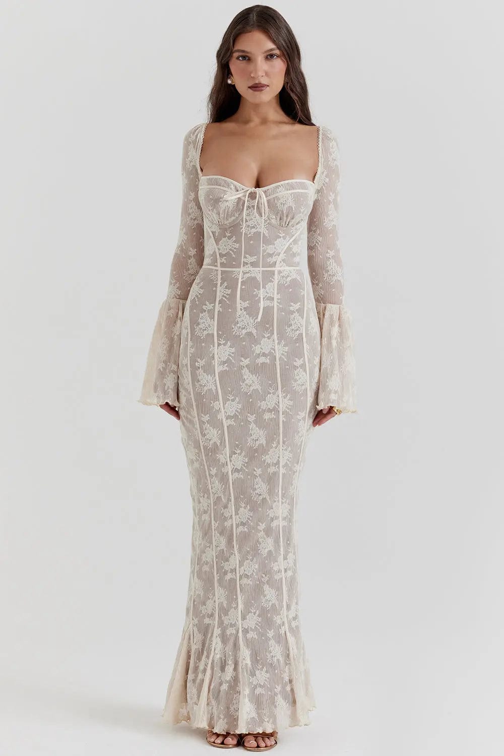 Sukienka maxi Adèle z koronki – gorset strukturalny i wiązane plecy