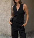 Zestaw damski z lnu - zapinana na guziki kamizelka i szerokie spodnie w stylu profesjonalnym, wyrafinowanym