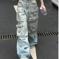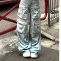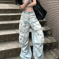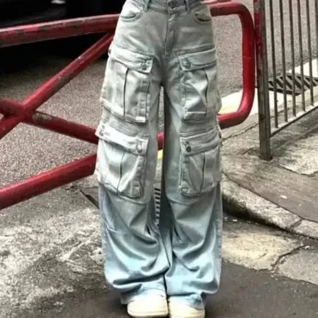 Cargo Jean Large en Denim Clair avec Poches Multiples