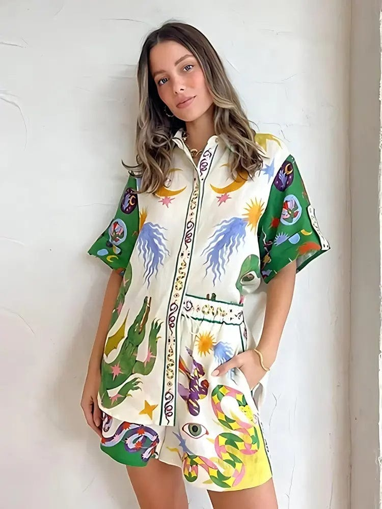Ensemble Chemise et Short Imprimé – Énergie Colorée et Confort Bohème