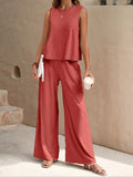 Ensemble en lin mélangé top et pantalon large - une allure chic et naturelle - MAX FOR ME