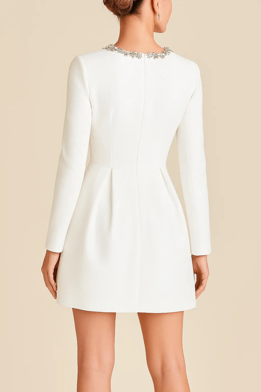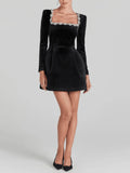 Robe Courte Noire Tweed Chic – Col Bijou et Poches Perlées