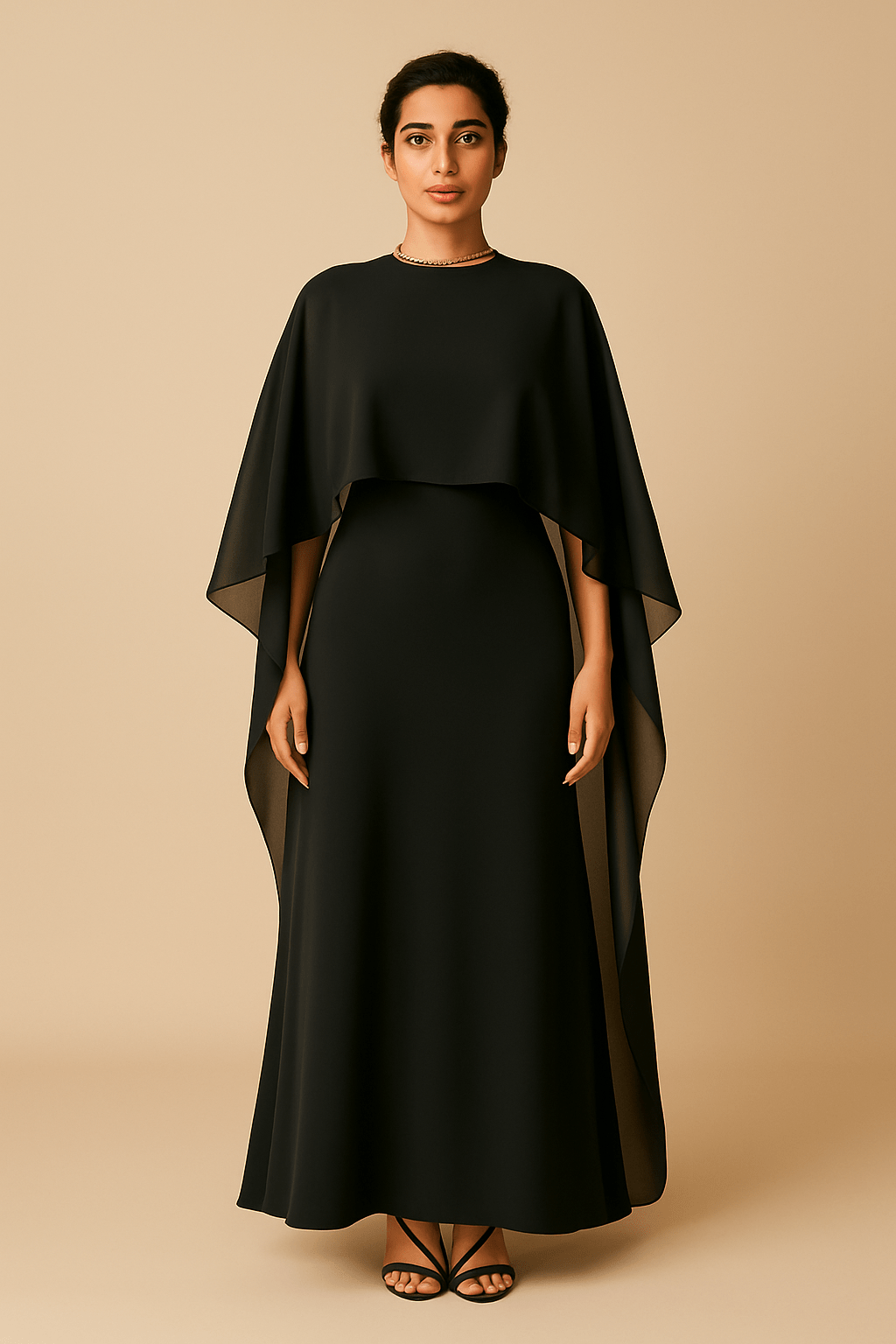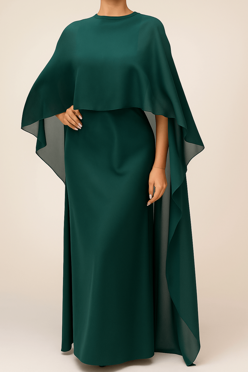 Ensemble Robe longue fluide avec cape – style croisé chic et décontracté pour l’été