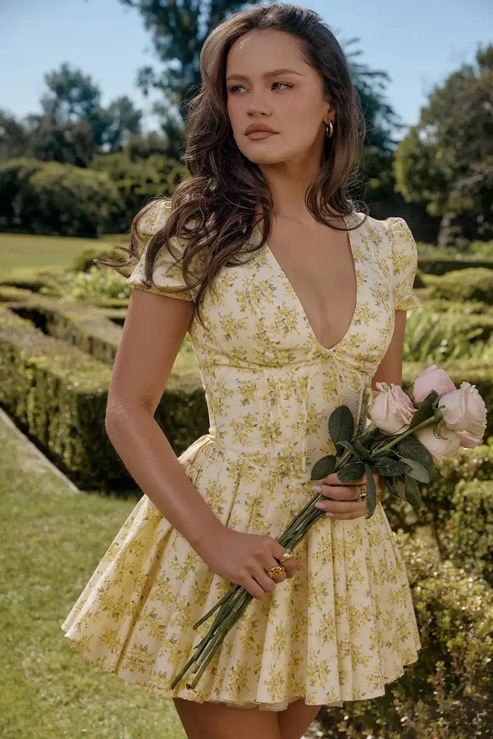 Légère comme une brise et romantique à souhait, cette robe mini florale séduit par son allure féminine et rétro. Son corsage ajusté souligne la silhouette avec douceur, tandis que la jupe plissée apporte un volume délicat et dansant. Les manches bouffantes et le décolleté en V finalisent ce look plein de fraîcheur, parfait pour les journées ensoleillées.